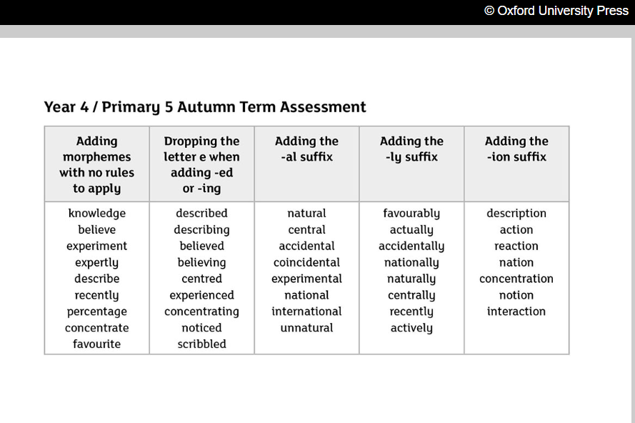 Spelling Assessment w/c 4th November 2024