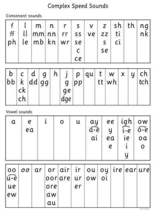 Please see below a speed sound chart which includes all the sounds your child will learn.