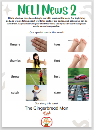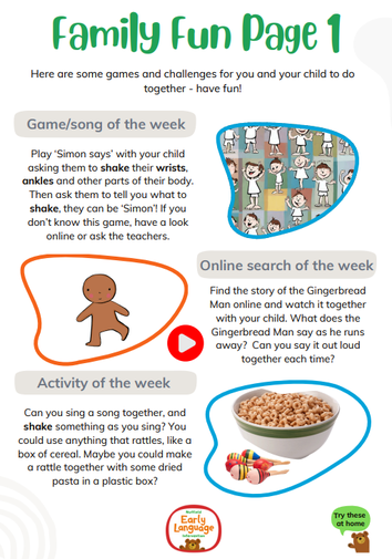 Each week we will tell you the new words that children have been learning so that you can practise using them at home.