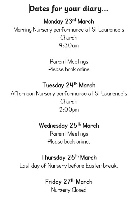 For any information about our Nursery expectations, please scroll to the bottom for links to Stay and Play, Tapestry, Toilet Training and What you need to bring. Thank you.