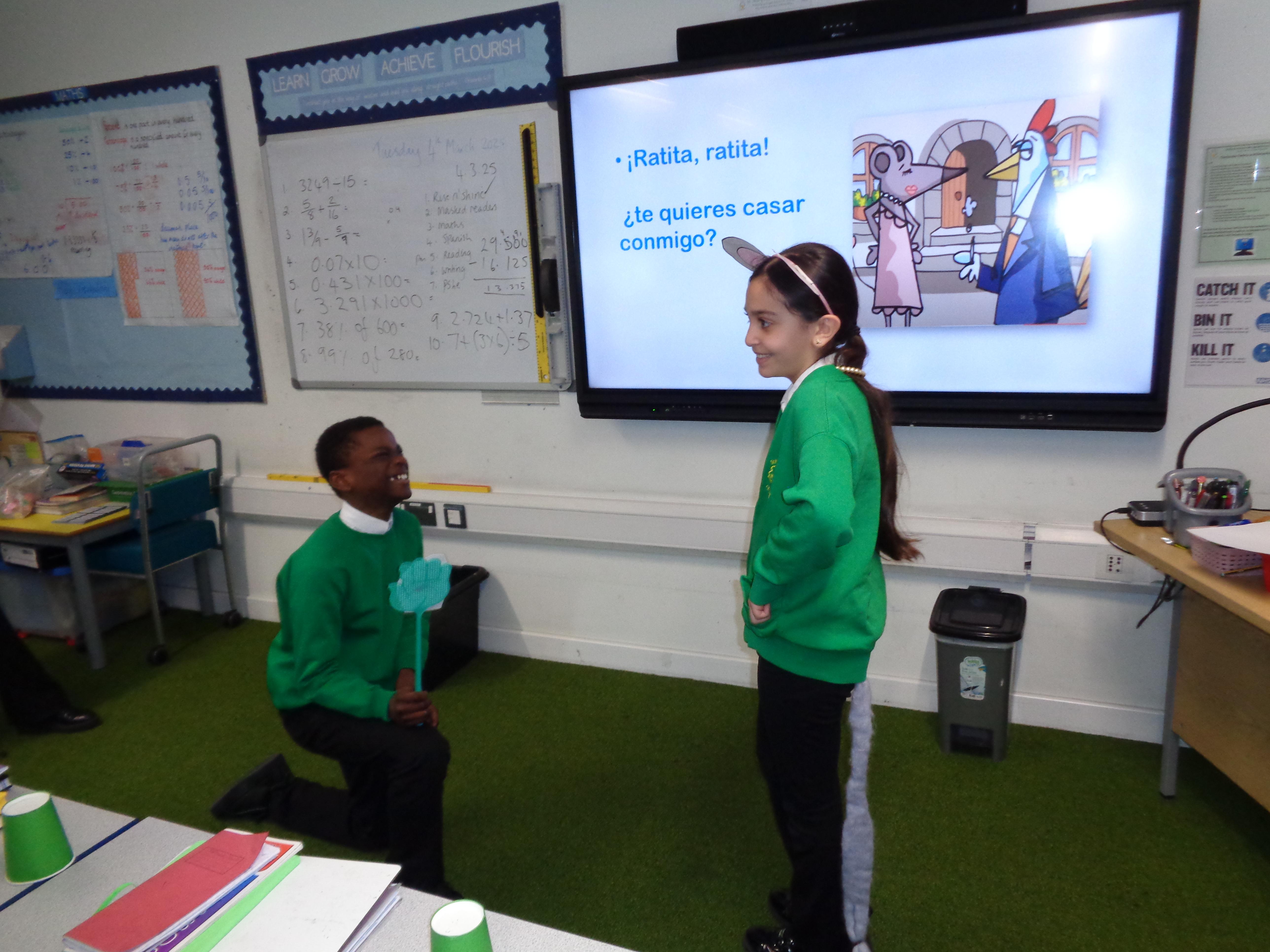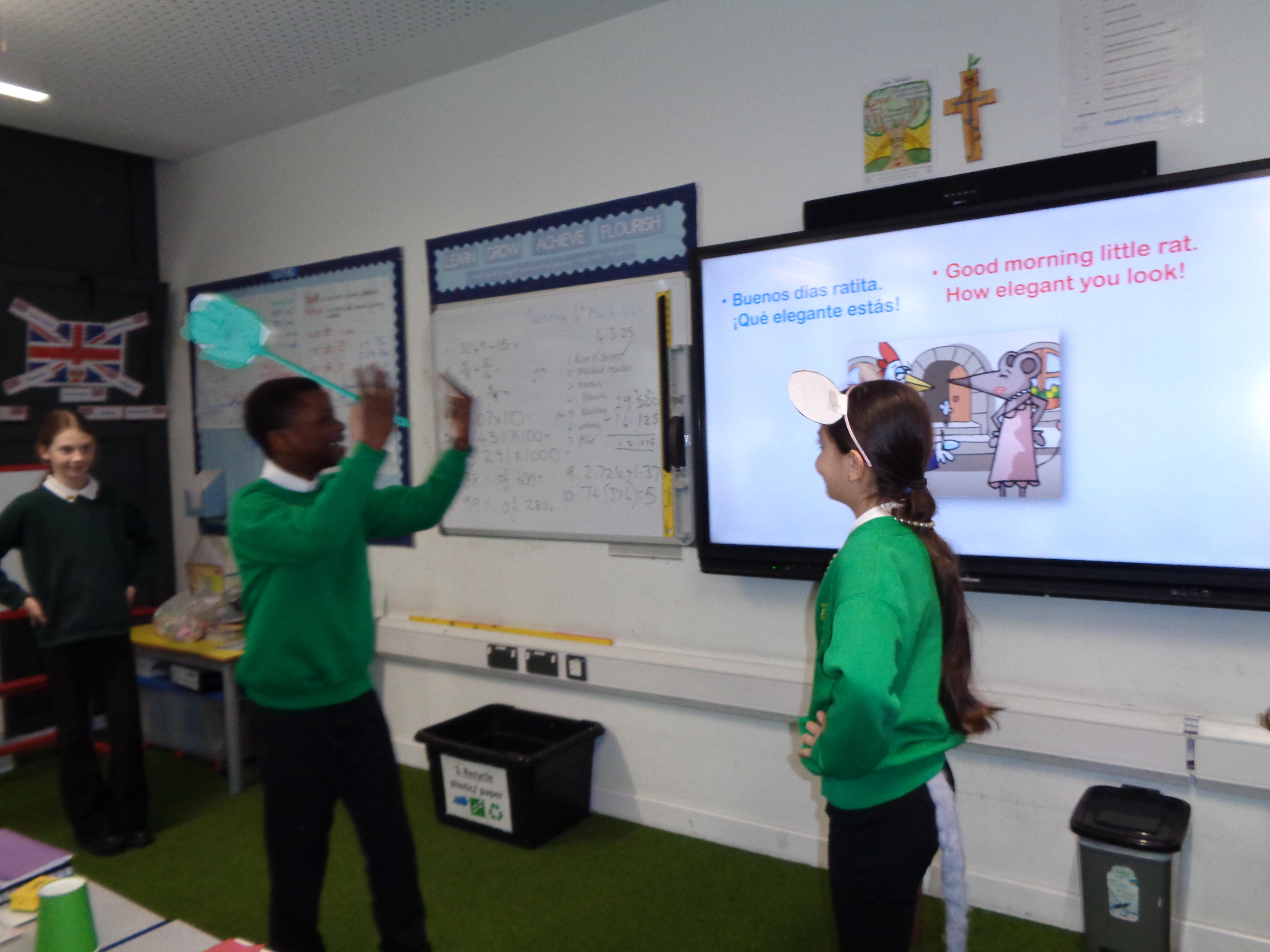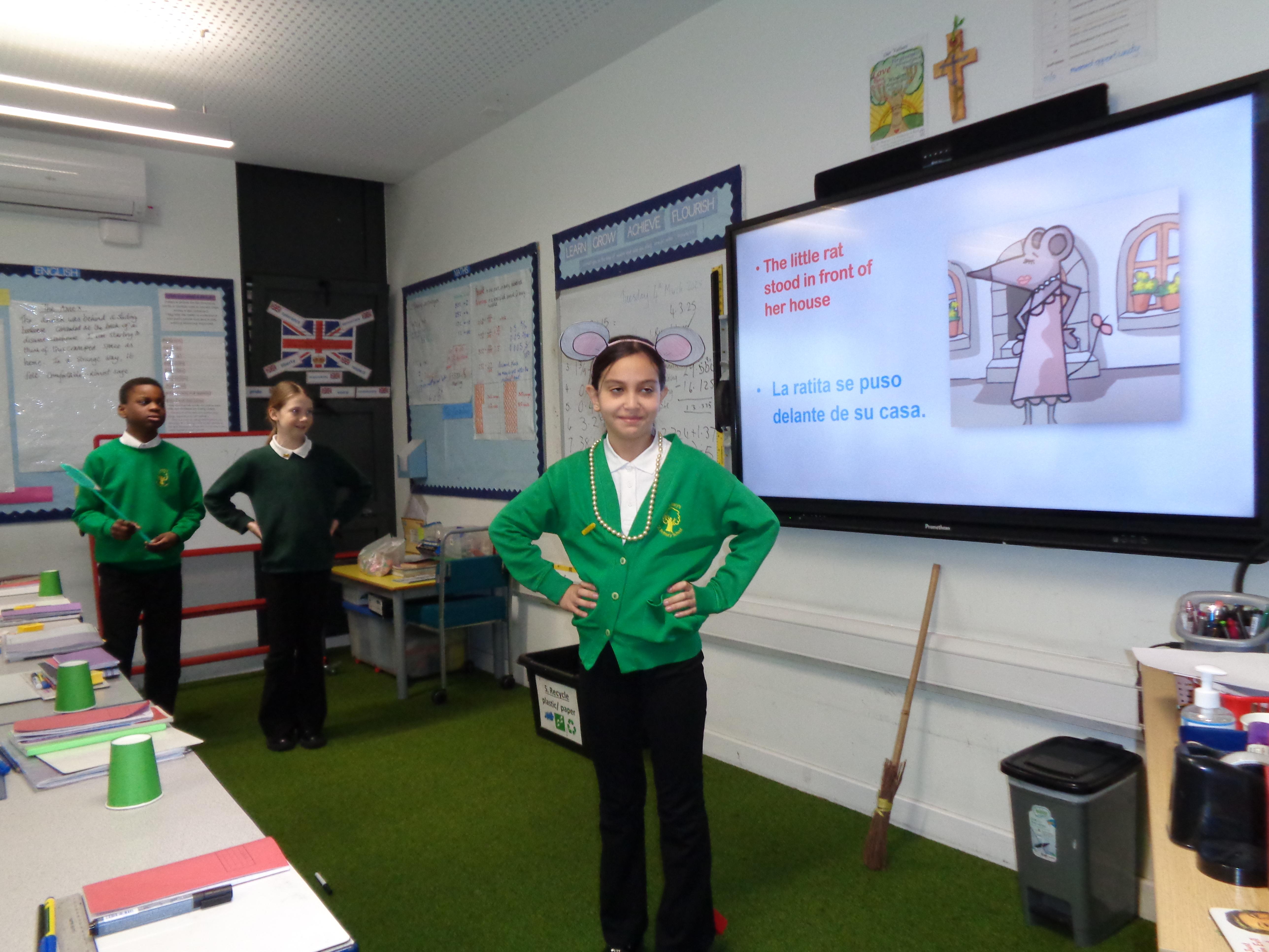 The Year 6 children read and performed a traditional Spanish tale: 'La Ratita Presumida' (The boastful little rat). We had wedding proposals, broken hearts and a 'run for your life' dash! All very exciting. Well done, Year 6.