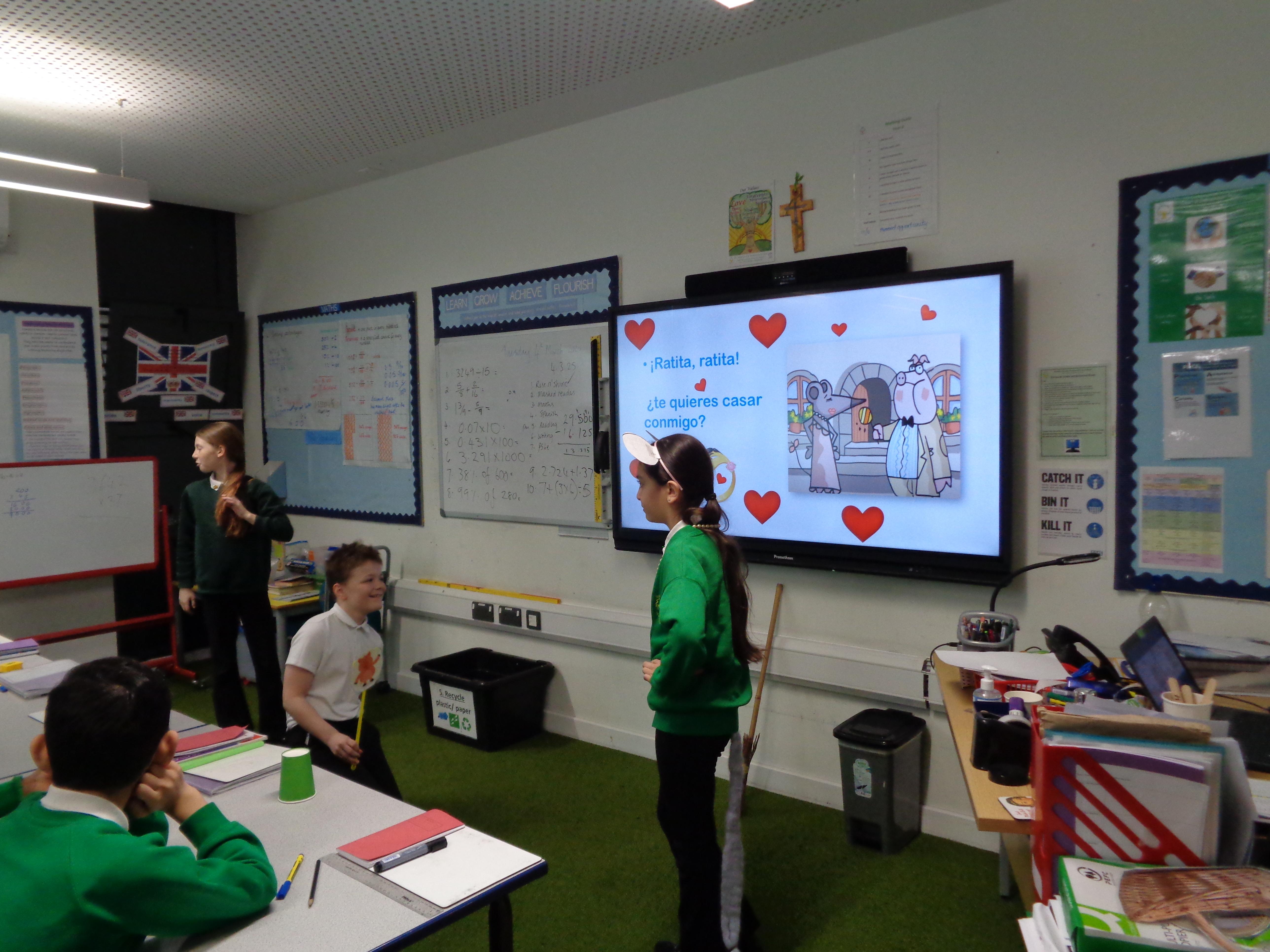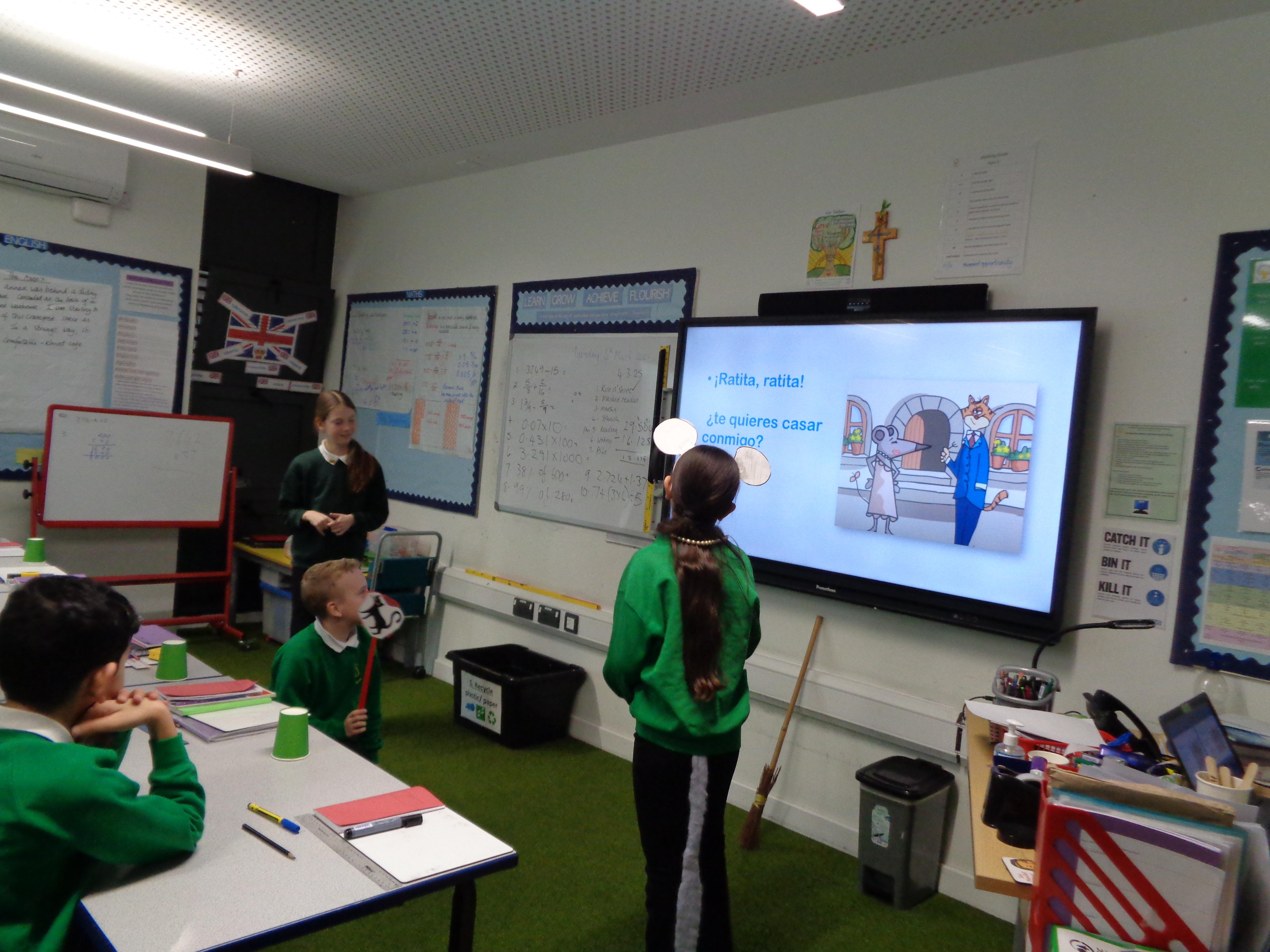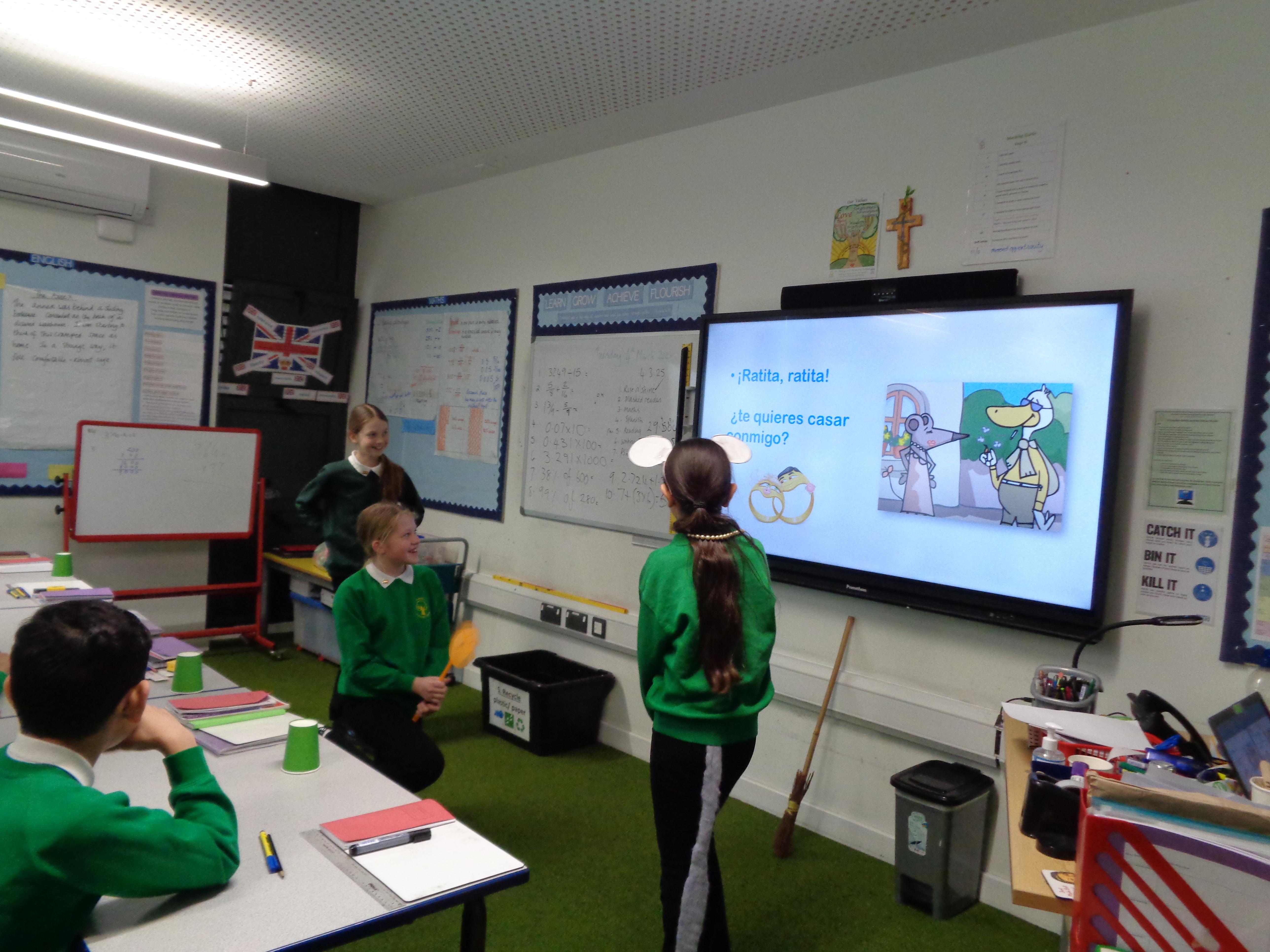 The Year 6 children read and performed a traditional Spanish tale: 'La Ratita Presumida' (The boastful little rat). We had wedding proposals, broken hearts and a 'run for your life' dash! All very exciting. Well done, Year 6.