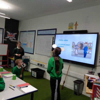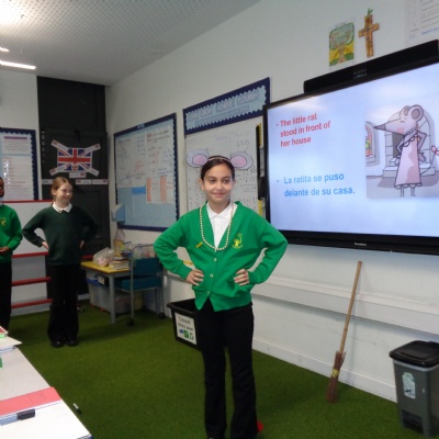 The Year 6 children read and performed a traditional Spanish tale: 'La Ratita Presumida' (The boastful little rat). We had wedding proposals, broken hearts and a 'run for your life' dash! All very exciting. Well done, Year 6.