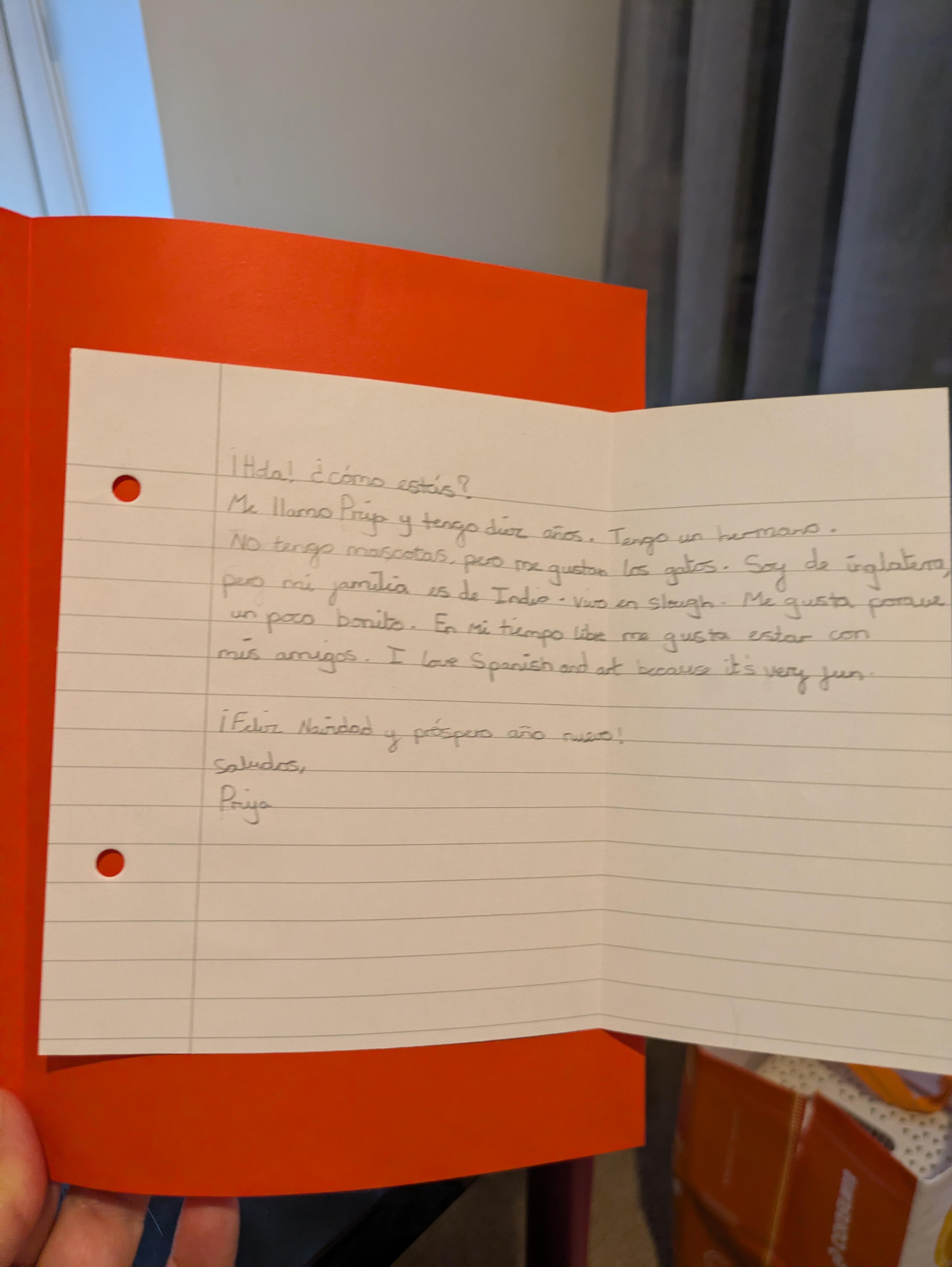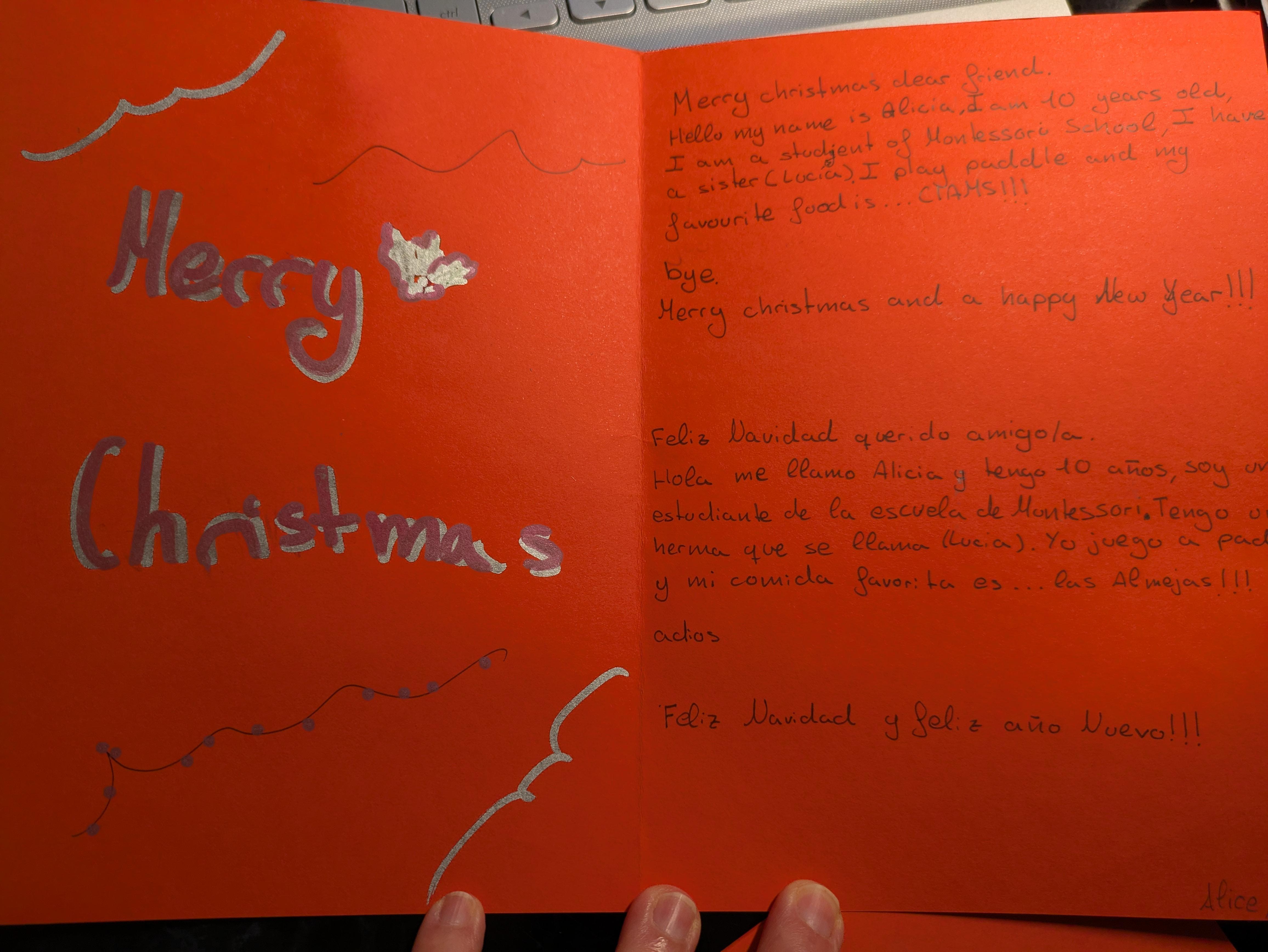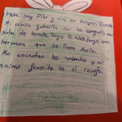 Each of our pupils received a letter/Christmas card from a pen-pal from our partner school in Zaragoza, Spain.