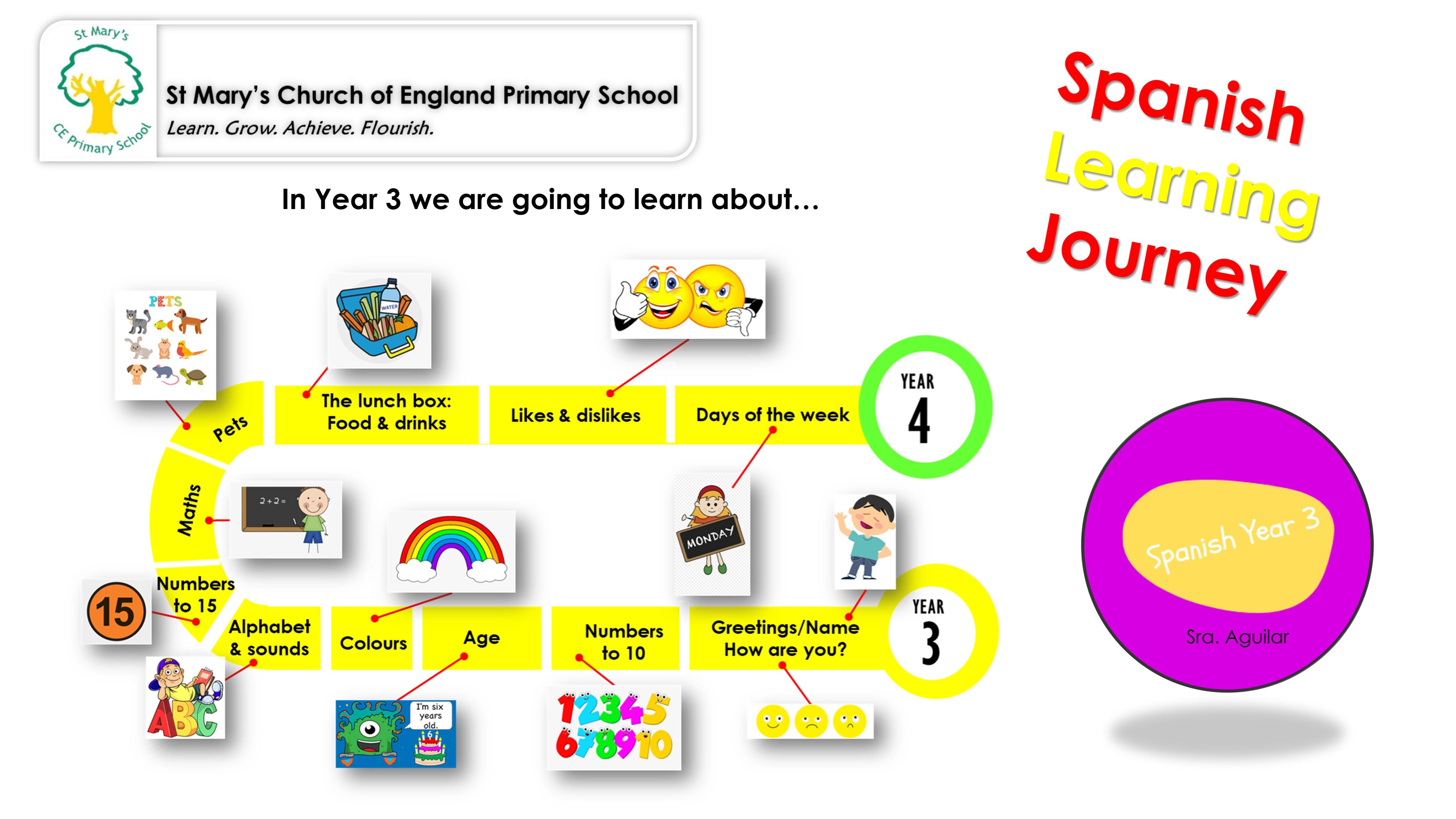 I CAN DO THIS IN YEAR 3: You will see the Learning Intentions of each term. Here you can also find the questions you should be able to ask and answer in Spanish in each term, with a model to help you do just that.
