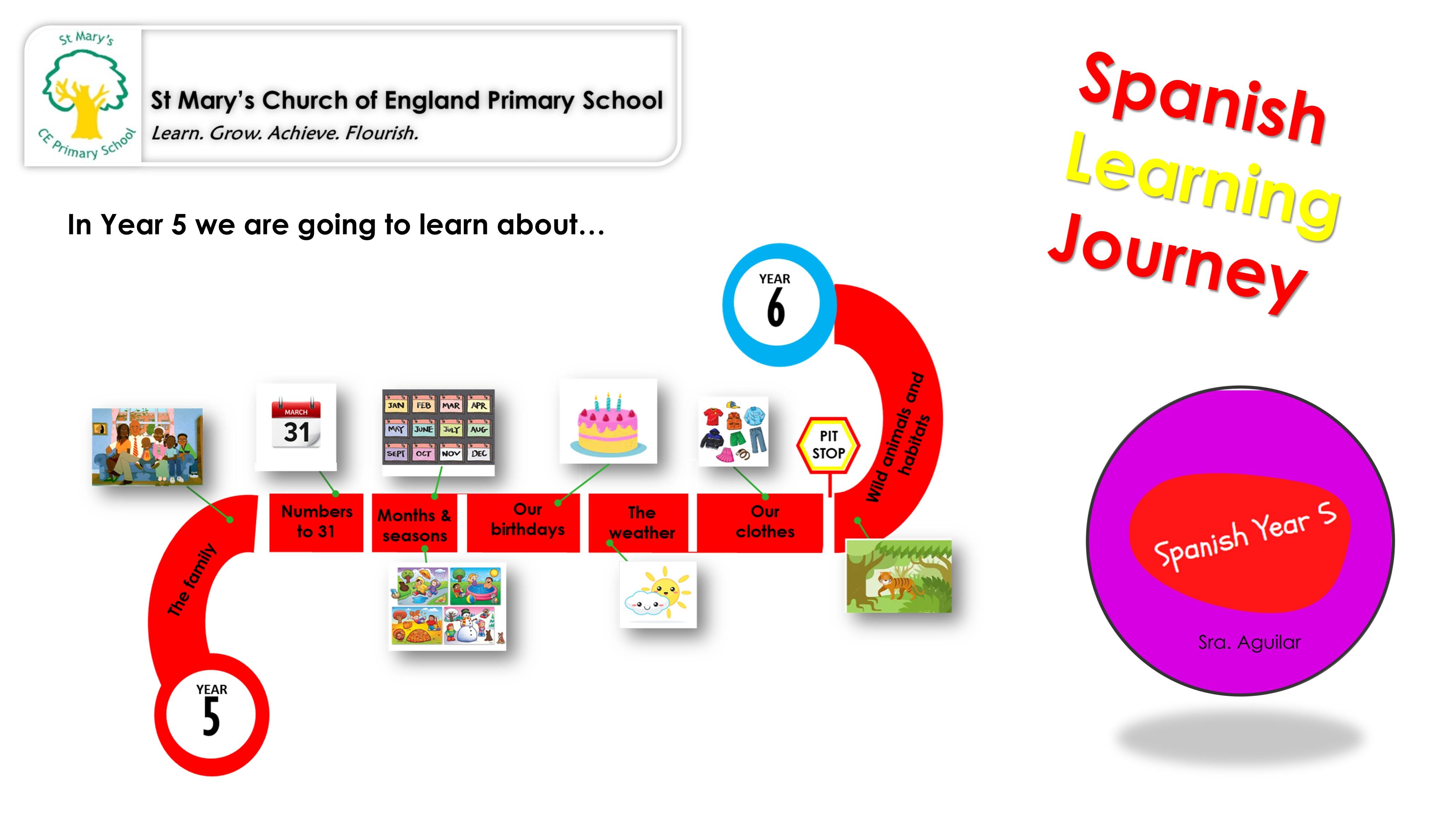 I CAN DO THIS IN YEAR 5: You will see the Learning Intentions of each term. Here you can also find the questions you should be able to ask and answer in Spanish in each term, with a model to help you do just that.