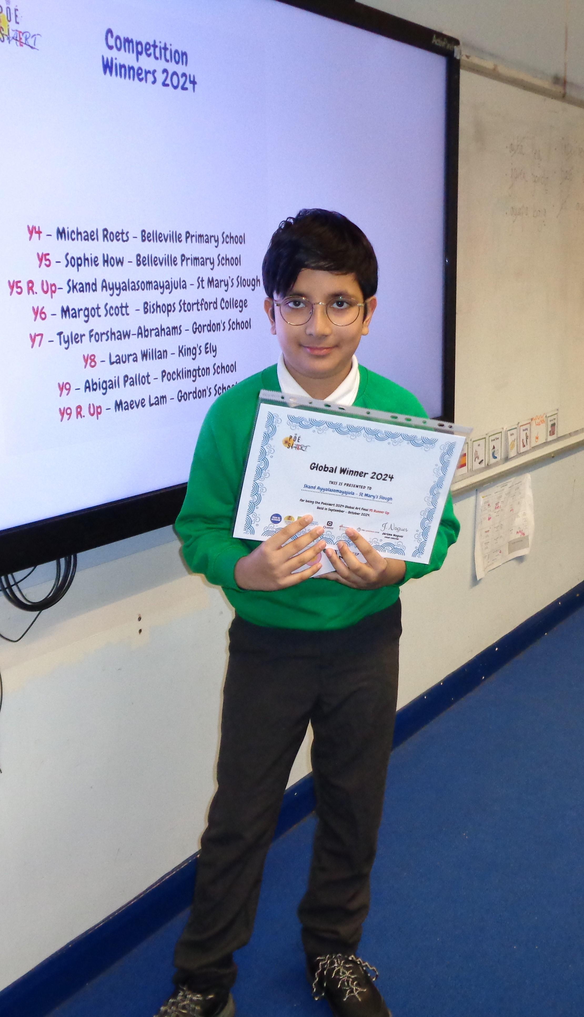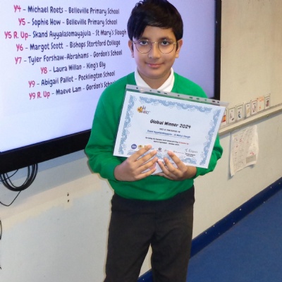 Congratulations, Skand, for your success as the Year 5 winner of this competition.
