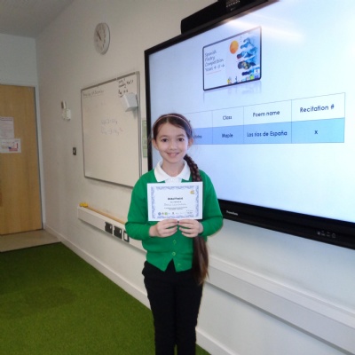 Your piece of work was imaginative, original and well executed. Your recitation of the long poem from memory merited a second award, but, the competition was fierce. Very well done! ¡Excelente!